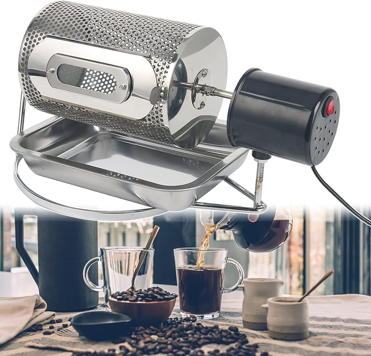 • 【COFFEE OASTER】This coffee roaster is designed with a tray for easy removal of roasted beans, so you can transfer them to a cooler container or container without any problems. The infinitely adjustable speed button and the one-touch on/off switch make it easy to use.