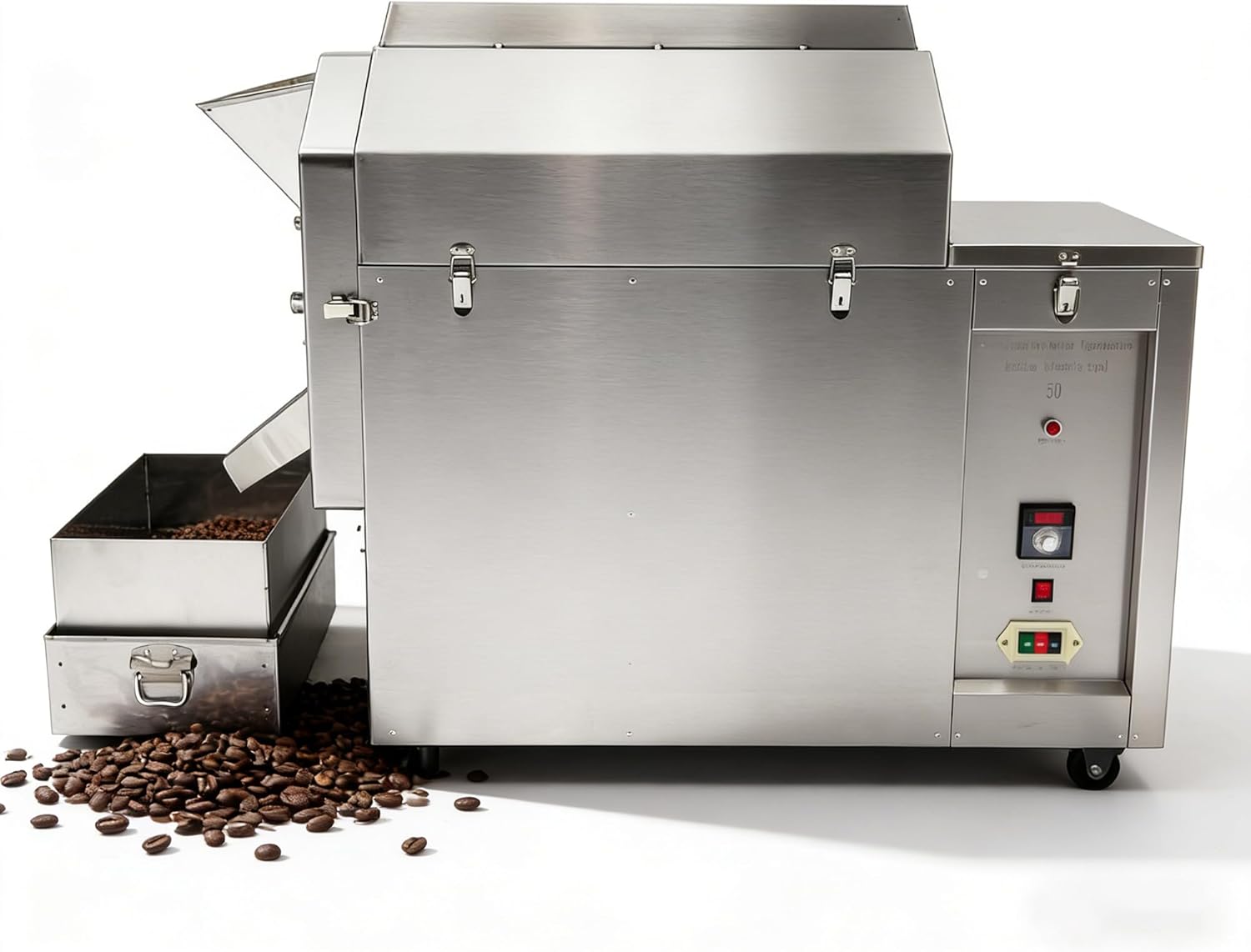 - Professional Uniform Roasting: This commercial coffee roaster features a horizontal rotating drum for even heating and consistent roasting. Perfect for coffee beans, nuts, seeds, and peanuts, it ensures every batch is roasted uniformly for superior flavor and quality