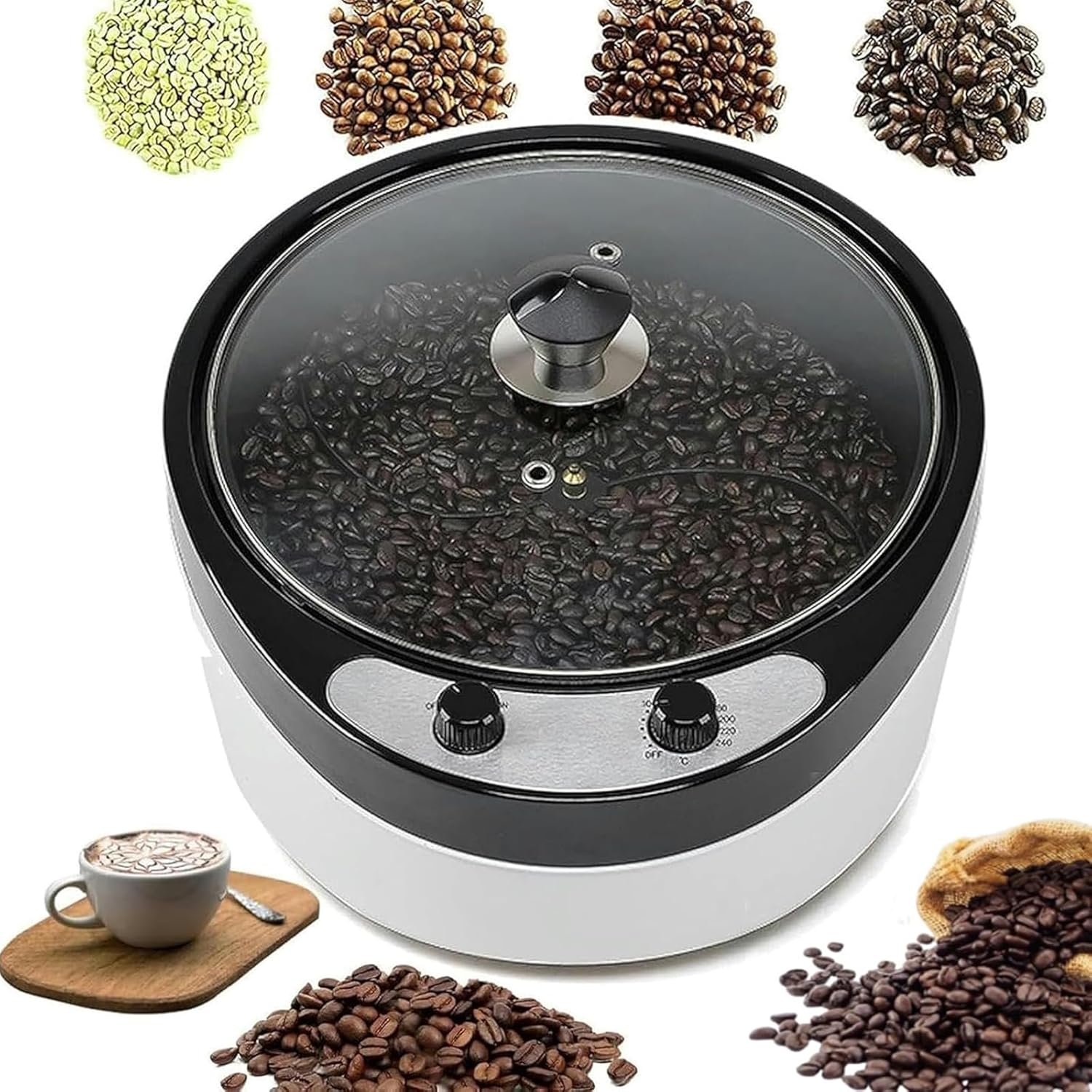 - Adjustable Temperature and Time: Equipped with a precise knob, you can easily control the temperature and time. You can customize the roasting curve to meet your coffee bean roasting needs