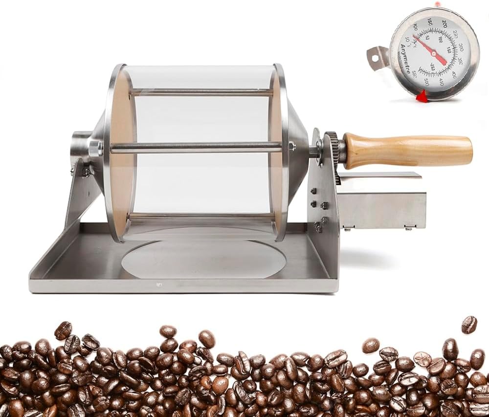 - 【Clear View for Precision Roasting】The transparent glass drum of this home coffee roaster allows you to visually monitor bean color and development throughout the process, helping to achieve your desired roast level and avoid over-roasting.